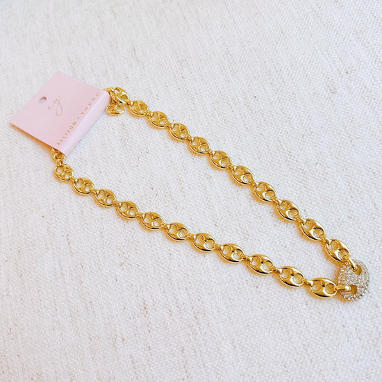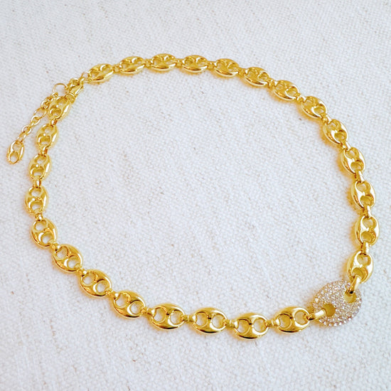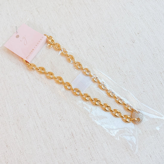 This classic and chic horse bit linked chain necklace offers both style and sophistication. The timeless horse bit design adds a touch of elegance, while the linked chain adds a modern twist. Great details all around.
