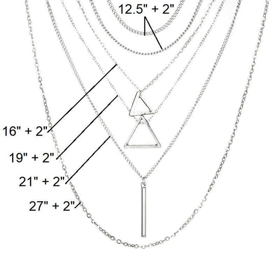 - 2 Triangles, 1 Vertical Bar, 2 Chokers, and 1 Long Chain
