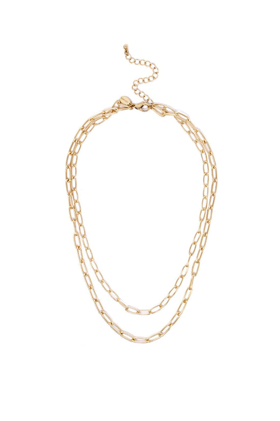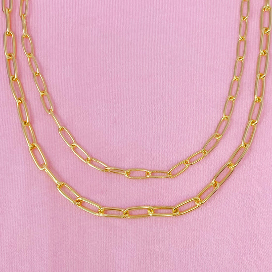 First layer is slimmer chain than the second one. 16” for first chain and 17” for second one. It connected together and comes with 3” extender.