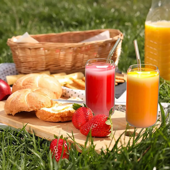 18.6oz 540ML Drinking Glasses Can Shaped Glass Cups with Bamboo Lids