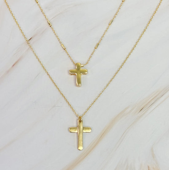 This set of two necklaces features a pretty chain and modern cross design. Versatile and stylish, these necklaces can be worn together for a complementing look or separately to make a statement. Elevate any outfit with this must-have accessory set.